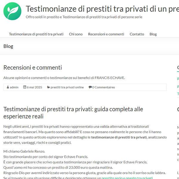 Scopri testimonianze autentiche e opinioni reali sui prestiti tra privati in Italia. Il nostro sito raccoglie esperienze dirette di utenti che hanno ottenuto o concesso prestiti senza passare dalle banche.