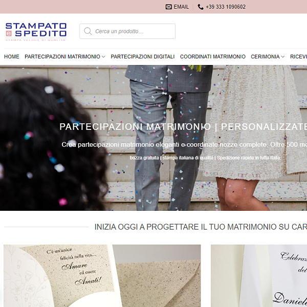 Stampato e Spedito è il servizio online specializzato in partecipazioni di matrimonio e articoli per eventi personalizzati, pensato per chi desidera creare momenti indimenticabili con eleganza e stile. Sul sito è possibile trovare una vasta gamma di prodotti per il wedding stationery, tra cui partecipazioni nozze, menù ricevimento, libretti messa, segnaposto, tableau de mariage, etichette personalizzate e molto altro. Tutti gli articoli sono facilmente personalizzabili online, consentendo di scegliere testi, colori, caratteri e dettagli grafici per ottenere un coordinato unico che rispecchi perfettamente il proprio evento.